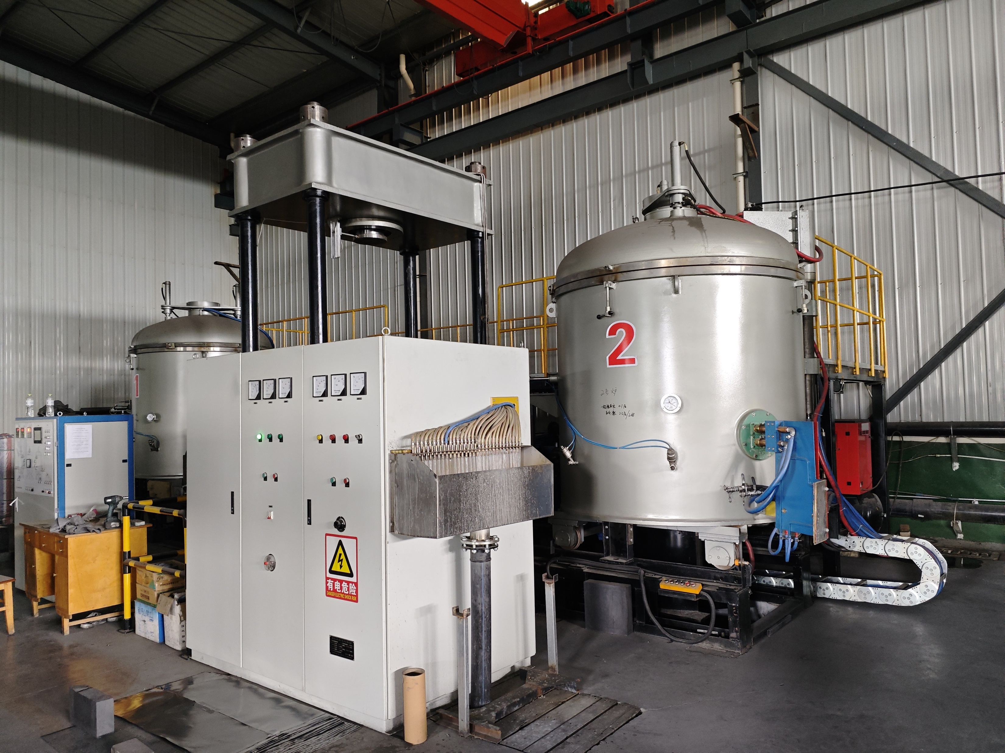 ▲真空熱壓爐為臥式、單室、冷壁、水平前裝料結構;